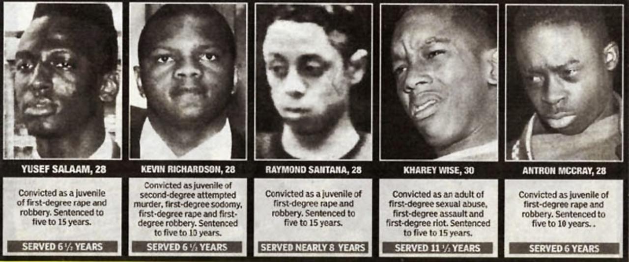 The young men, convicted and imprisoned, were later cleared by DNA evidence and the confession of a serial rapist