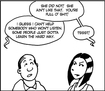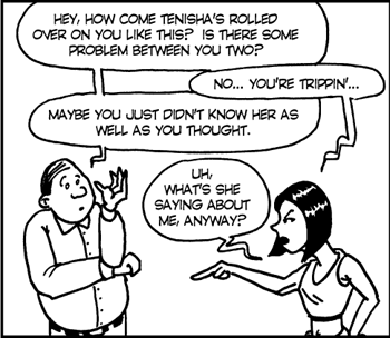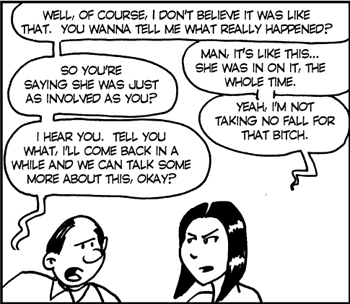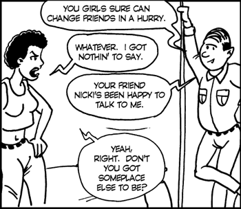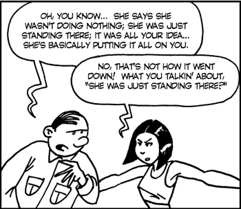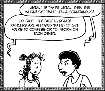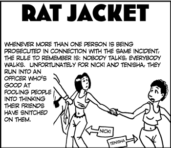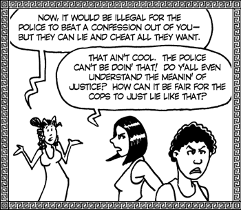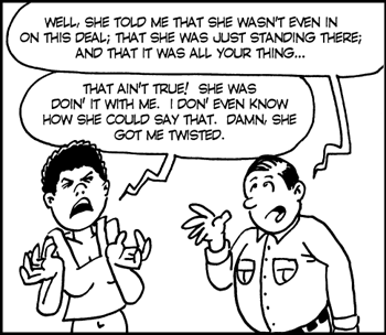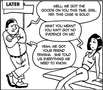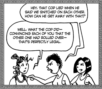 Example: Sue and Sally were arrested together in a drug case. At the police station, they were kept in separate holding cells, out of earshot of each other. The detective investigating the case questioned them individually about the crime. Neither of them answered these questions. However, Sue chatted with the detective, just making small talk—she told him where she went for dinner the night before, where she was planning to go for vacation, etc. Later on, the detective went to Sally and fooled her into thinking that Sue snitched on her. Sally wouldn’t have believed the detective, except that he mixed in the trivial information Sue had given him earlier, and those tidbits of truth made his story very convincing. Once Sally was persuaded that Sue had told on her, Sally angrily insisted it was all Sue’s doing. The detective then took Sally’s statements to Sue, who was outraged, and promptly ratted on Sally. So in the end, both suspects were suckered into snitching on each other.2